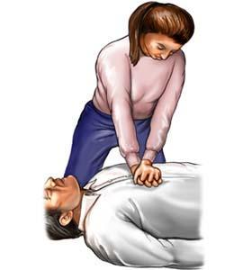 the heel of your hand in the middle of the chest. Cover it with your other